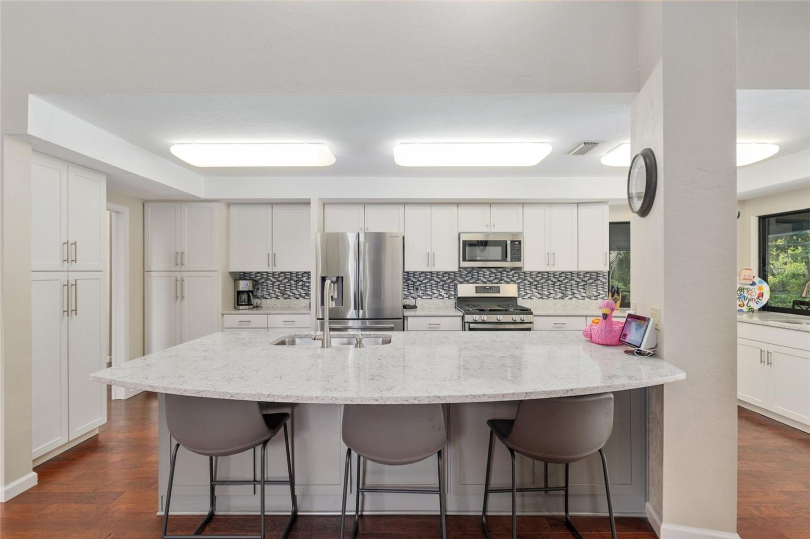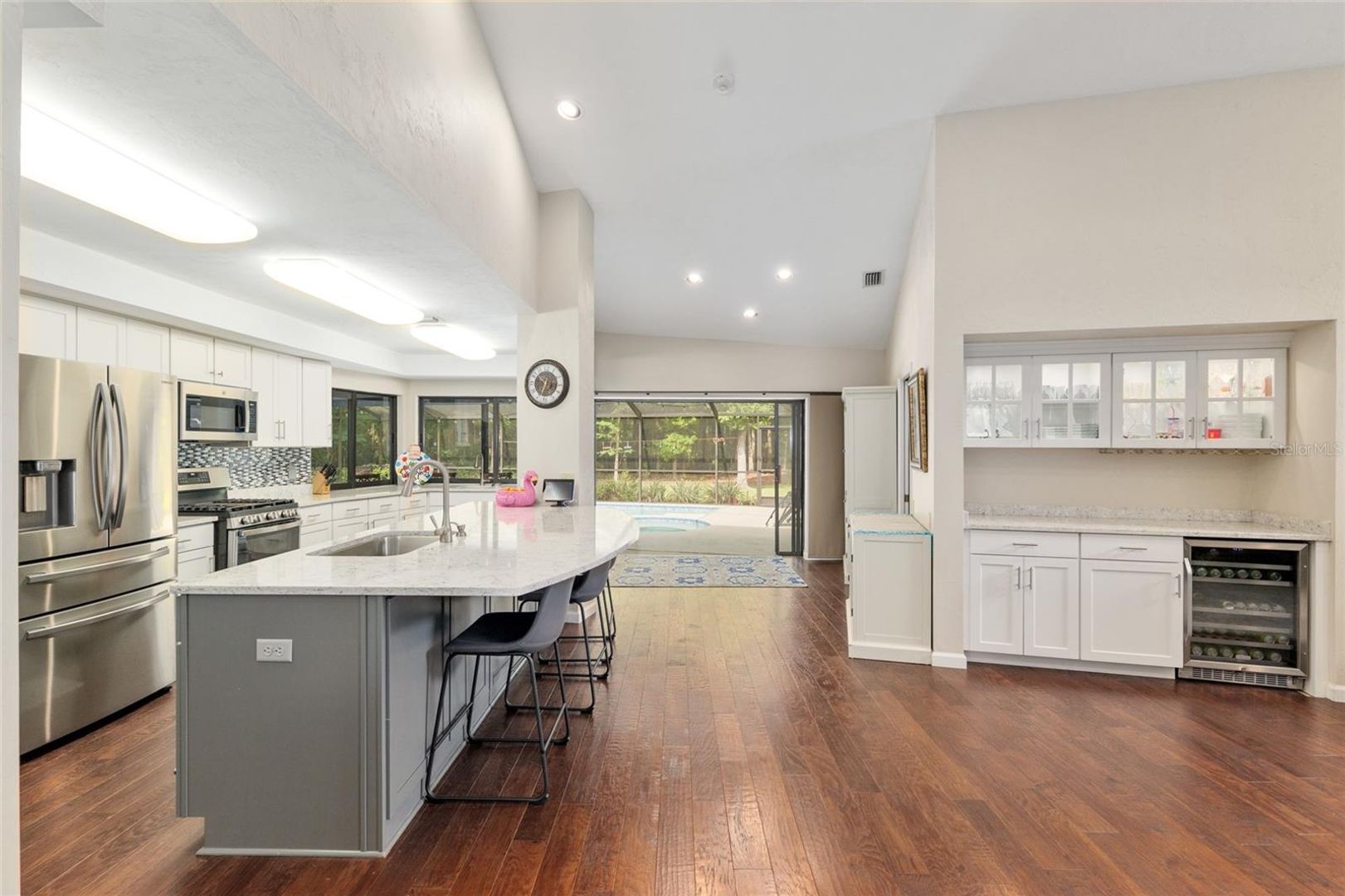Welcome to this stunning 4-bedroom, 3-bathroom home located in the vibrant city of Gainesville, FL. This spacious property boasts a variety of top-notch amenities designed for a comfortable and luxurious lifestyle. The home features a remodeled kitchen equipped with stainless steel appliances, granite countertops, and a dry bar complete with a wine fridge. The living area is enhanced by beautiful wood floors and a cozy wood-burning fireplace. The property also includes a laundry room for your convenience. Step outside to a covered patio that leads to a private, fenced yard with a swimming pool. The outdoor living space is perfect for entertaining or simply relaxing. The home also includes lawn care and pool maintenance, allowing you to enjoy the benefits of homeownership without the hassle. Experience the perfect blend of elegance and functionality in this remarkable Gainesville home.